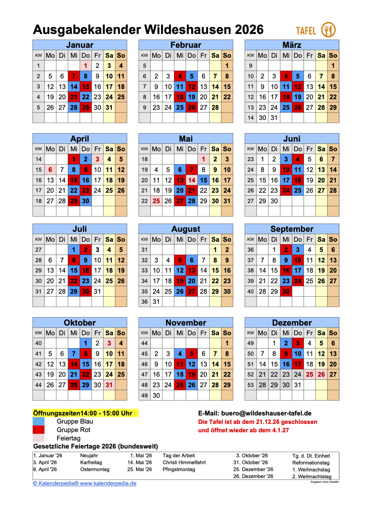 Grundsätzlich besteht kein Rechtsanspruch auf den Bezug von Lebensmitteln durch die Wildeshauser Tafel eV. !